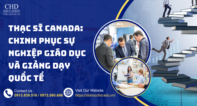 Canada, với hệ thống giáo dục tiên tiến và danh tiếng toàn cầu về đào tạo giáo viên, là điểm đến lý tưởng cho du học sinh Việt Nam muốn theo đuổi chương trình thạc sĩ trong ngành giáo dục và giảng dạy quốc tế. Các trường đại học hàng đầu như University of Toronto, University of British Columbia (UBC), và McGill University cung cấp các chương trình thạc sĩ chuyên sâu, giảng dạy bằng tiếng Anh, kết hợp lý thuyết và thực tiễn, giúp bạn phát triển sự nghiệp trong lĩnh vực giáo dục toàn cầu. Hãy để Công ty Tư vấn Du học CHD đồng hành cùng bạn trên hành trình chinh phục giấc mơ học tập và sự nghiệp giáo dục quốc tế!