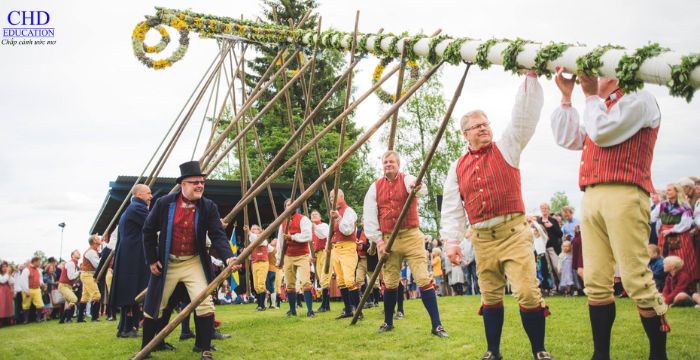 Lễ hội Midsommar là một trong những truyền thống quan trọng và vui nhộn nhất của người Thụy Điển, diễn ra vào khoảng cuối tháng 6. Đây là dịp để mọi người cùng nhau chào đón ánh sáng mùa hè, tôn vinh thiên nhiên và sự sống. Trong ngày lễ, người Thụy Điển sẽ tổ chức các hoạt động ngoài trời, nhảy múa quanh cây hoa, ăn uống các món truyền thống như cá trích muối, khoai tây mới luộc và bánh ngọt.