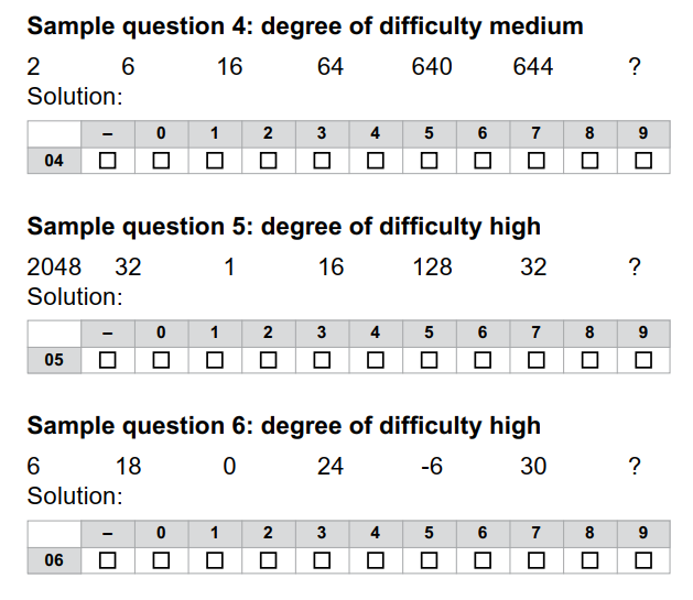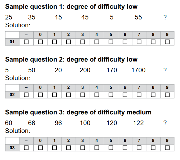The subtest “Continuing Numerical Series” presents a sequence of numbers formed according to a specific rule. Your task is to identify that rule and apply it to find the missing number.